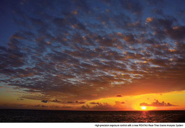 K-3 jest wyposażony w nowy PENTAX Real-Time Scene Analysis System (system analizy sceny w czasie rzeczywistym), który składa się z czujnika pomiaru światła RGB o rozmiarze około 86000 pikseli oraz udoskonalonego algorytmu, który pozwala nie tylko kontrolować ekspozycję z najwyższą dokładnością, ale również wykorzystać dane dostarczane przez czujnik pomiaru światła do jeszcze dokładniejszego AF oraz detekcji balansu bieli. Dzięki nowemu systemowi, zakres minimalnego poziom jasności został rozszerzony aż do nawet -3 EV.